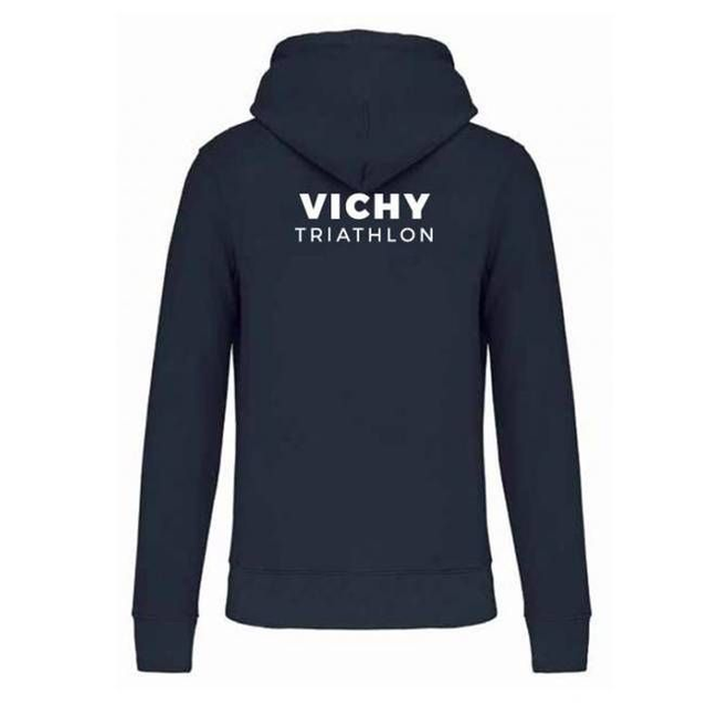 Sweat à capuche ZEROD à l'effigie du club. Ecriture Vichy Triathlon dans le dos. Coupe enfant, taille 6/8 ans uniquement.